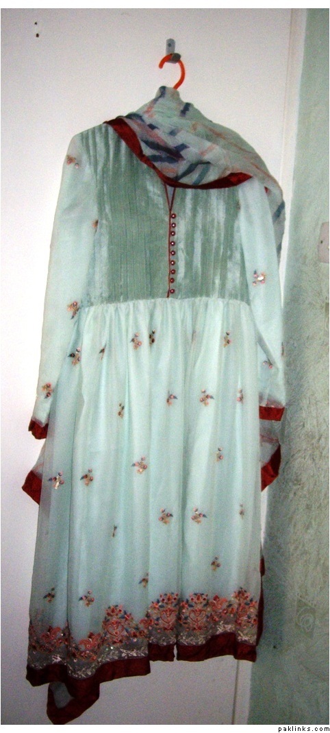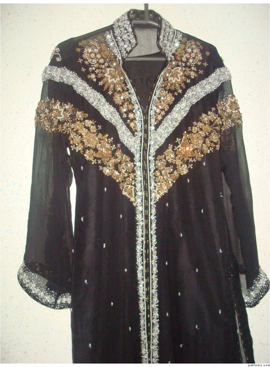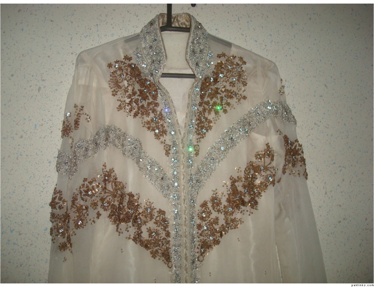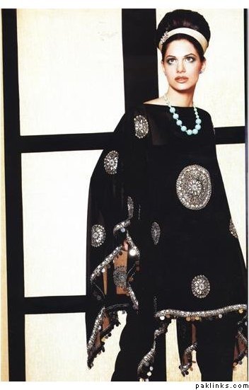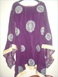 purple poncho on 60 grams pure chiffon with pure raw silk under-shirt and pants; similar embroidery on the back as well; thread worked motifs topped with stones,sequins and beads/pearls. price: 9500rs