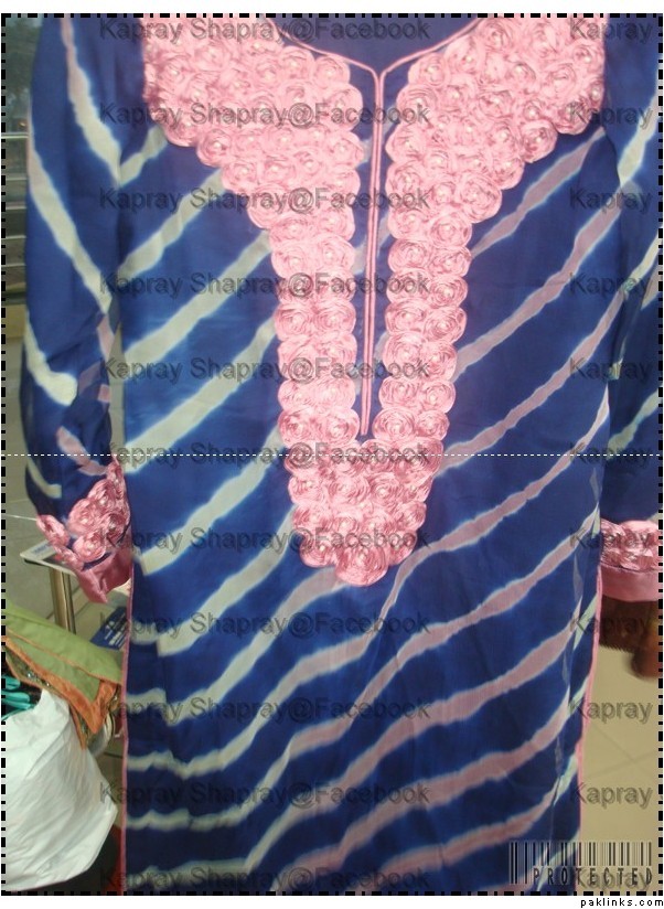 6500rs-tie and dye pure chiffon shirt with ribbonwork on neckline and sleeves