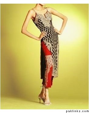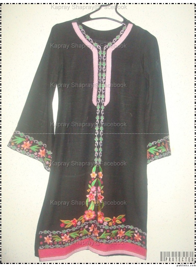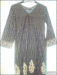 This has plain fitted capri with it but you can have a churidal with it. It is an A lined shirt with slits and can be made in any colour for embroidery and fabric,both on plain silk/chiffon or banarsi;the price doesnt include shipping though.
