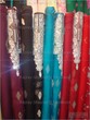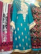 The turquoise…does it come in a purple?..or with gold kaam?..and are these prices for ready made or just the fabric?