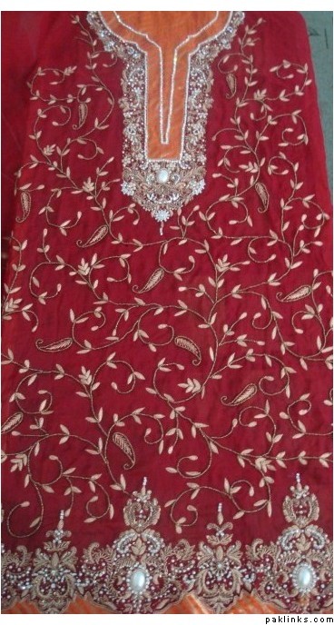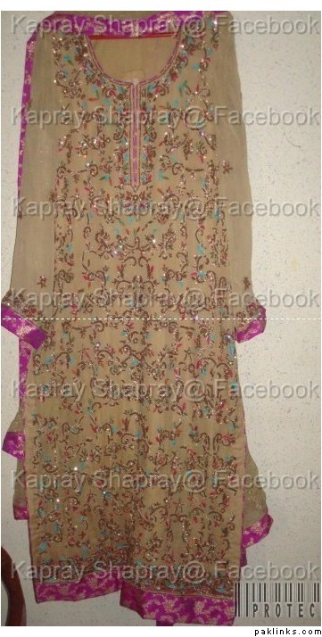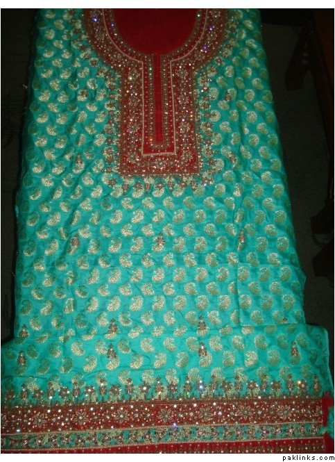 I made it for 90k. It is a heavy Gharara with standard 7.5 yards flair,fully handworked with tilla and stones, heavy border on gote and fully worked 4 sided dupatta border 7 inches wide