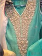 price: 21000rs without the work on the back of the neckline ; 24500rs with work on the neckline on the back. comes with a chiffon dupatta with black banarsi finishings and a plain churidar/pants.