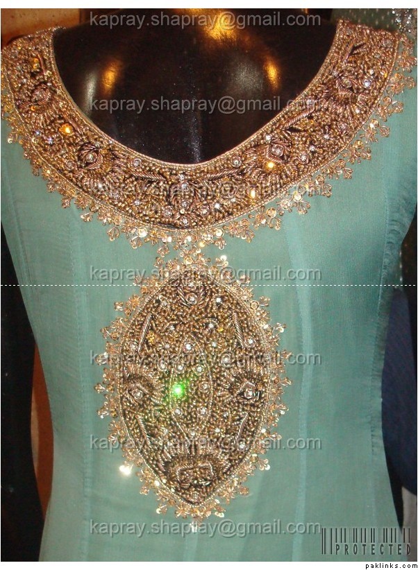 the price of a dress is not determined by embroiodery only. fabric prices and tailoring keep increasing (fabric prices on weekly basis at times) so the dress I quoted or 12000rs 2 yrs back costs me 13000rs now ! and NO karigar charges less for the same design with time because they have this justification that kaam material/labour charges increase with time as well, so they end up charging the same after haggle.