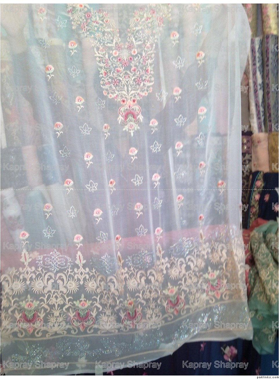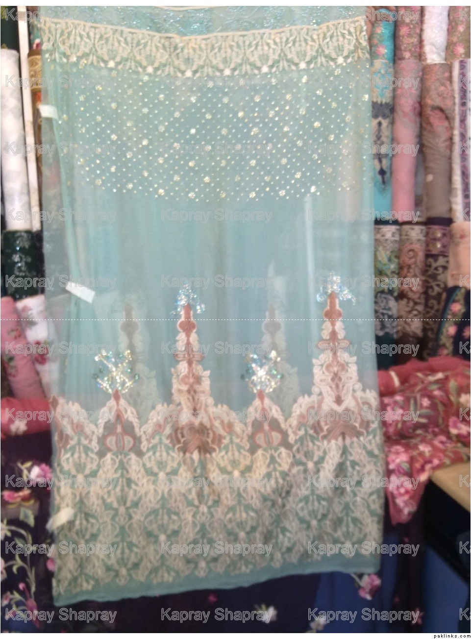 7500rs for unstitched shirt dupatta. it has swarovski crystal work mixed with thread work and an embroidered dupatta as well