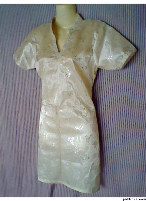 Golden and white silk ones are two piece suits for = 7 pounds per outfit..