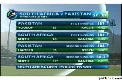 pakistan still has a chance although sa is favorite.i dont understand why kaneria came on to bowl with 30 runs on the board in the last innings on a turning wicket..you would see murali or warne open the attack in similar situations.again mr inzi is not the most creative individual