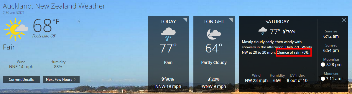chances of rain increased from 60% to 70%