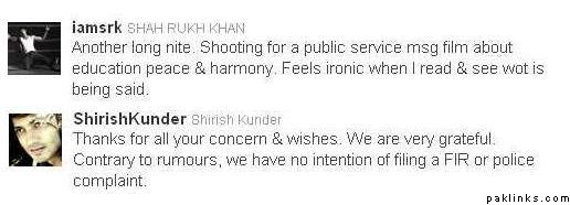 While SRK still is in denial, Kunder said he has no plans of filing an FIR against him.