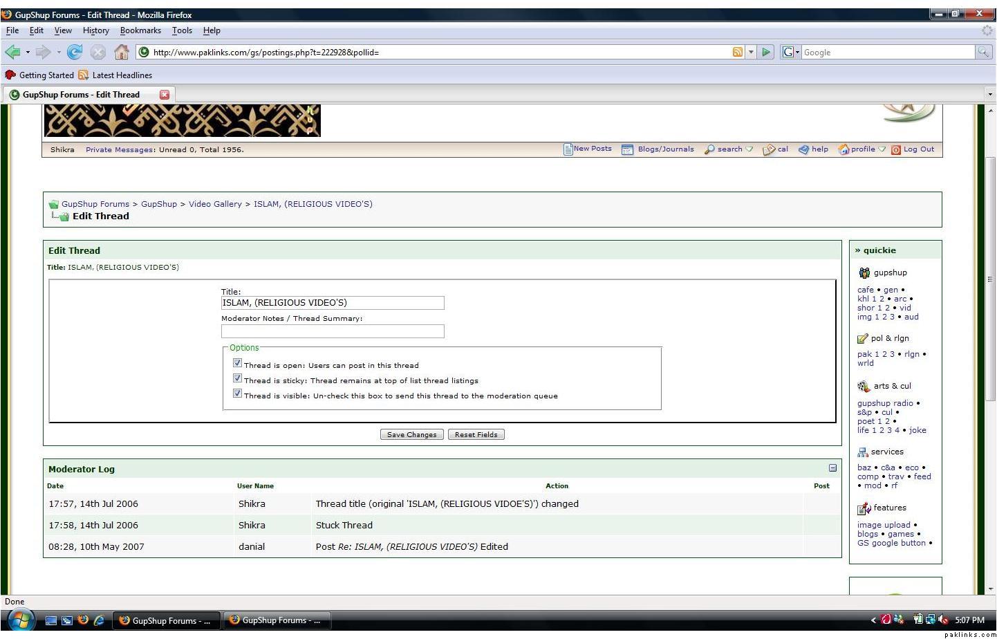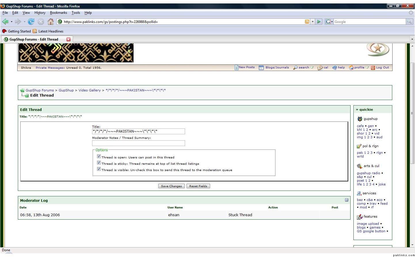I don’t know what you are talking about because the stickies in Video have been up all year along. I have not made any stickies in video recently. There are only 2 such threads in video: Islamic and about Pakistan. Islamic was opened on July , 2006 and Pakistan was opened on August 13, 2006.