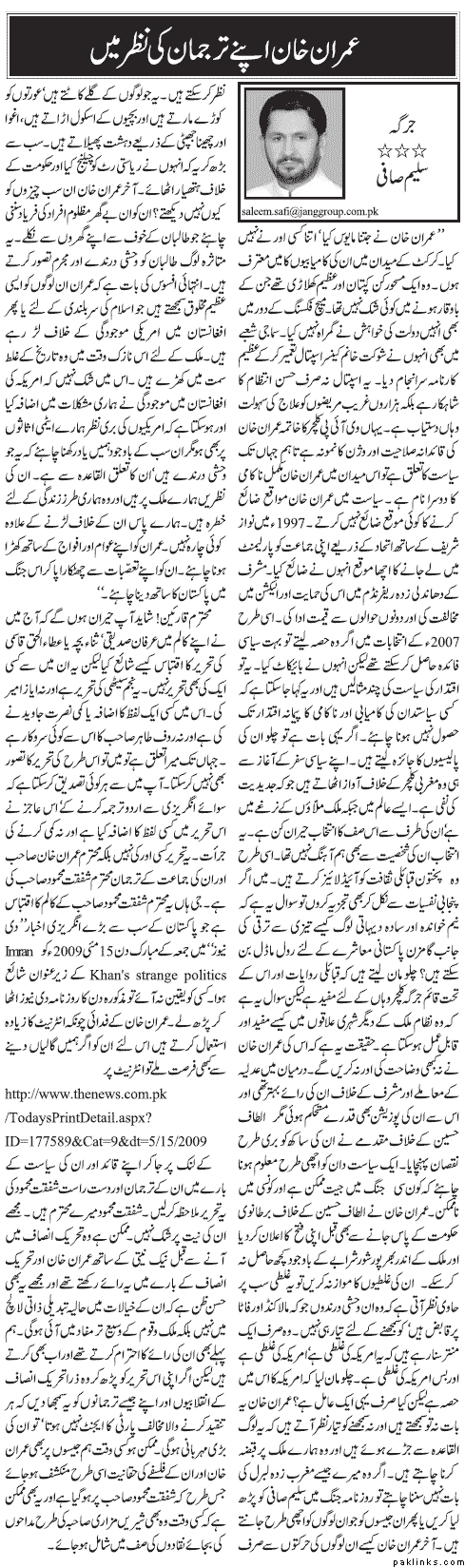 He should listen to the stories of the displaced people now that they are out of the Taliban fear zone. They describe the Taliban as bloody thirsty criminals. It is sad that Imran visualises them as some kind of higher beings or fighters of Islam responding to American presence in Afghanistan. Please!