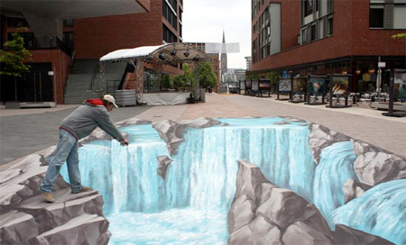 German artist Manfred Stader creates amazing three-dimensional paintings.3D illusion can be seen when the art is viewed from a particular angle.