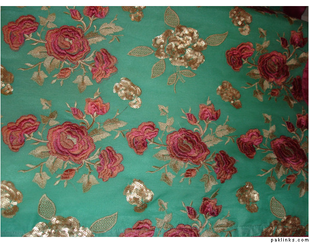 Hi i live in VA USA and i just recieved the new embroided fabric collection from pakistan the stuff is chiffon shirt and dupatta with raw silk.