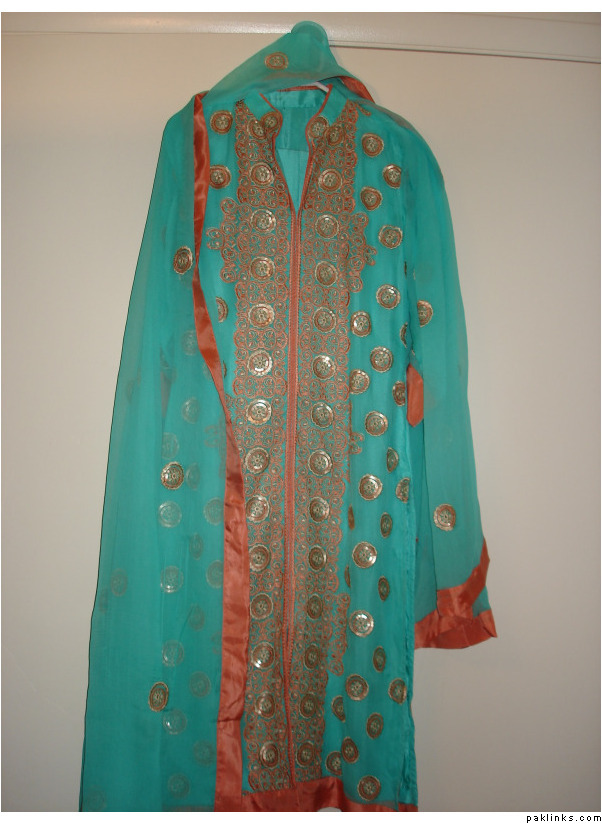 Thier is beautiful thread and sequins work on front and border if you are intrested let me know.I AM ATTACHING FEW PICS TO GIVE YOU BETTER IDEA ABOUT STUFF AND EMBROIDERY.