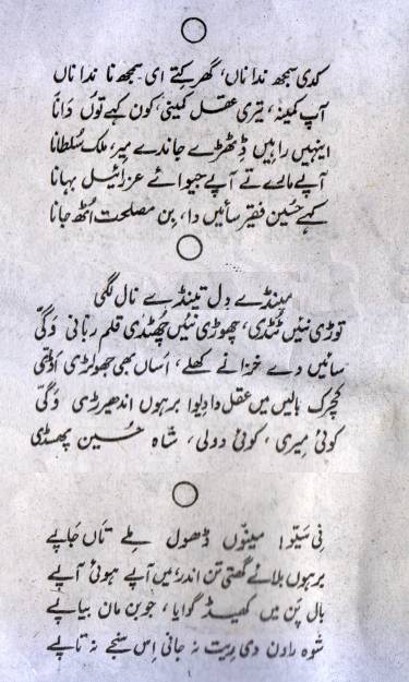 Shah Hussain is introduction to melody and rhythm that is spread all over Punjab. Grip on language, simple words, portrayal of feelings in pure way make Shah Hussain popular beyond borders of Punjab. ‘Mai ni main kinnu aakhan’ and ‘ni sayyon aseen naina de aakhe lagge’ are as popular in Sindh as in Punjab.