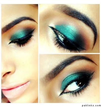 However, I recently found a couple of looks that utilise teal eye shadow in combination with neutral colours in a way that looks quite pretty and subtle: