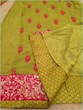 Lime green and pink threads and motifs A-shaped suit with trousers