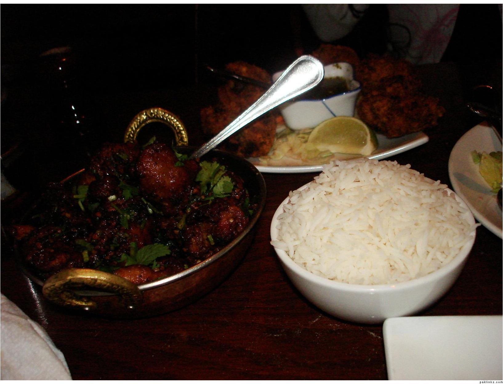 I had not realy wanted to go there fo ra while til i just finally got curious..one reason coz it just looks blah from the outside. It looks really plain, liek a typical chinese/desi takeaway, i..e, so so food and even worse seating area. However, the inside was really nice. It was really dark, the lights were very dim and there was soft music in the background. There’s very little seating but instead of being stuffy, its cozy and intimate, so even if all the tables are filled up (as they were at one point during the dinner) you can still talk to each other w/o having to yell or strain your ears to listen. Oh and hte bathroom was clean and it smelled nice :biggthumb