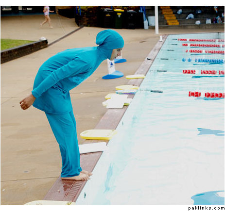 hahahah that looks like torture ! those suits CANNOT be as comfortable as the regular swim suits.. hareem u shud get ur hands to a time machine and go back to 700 AD