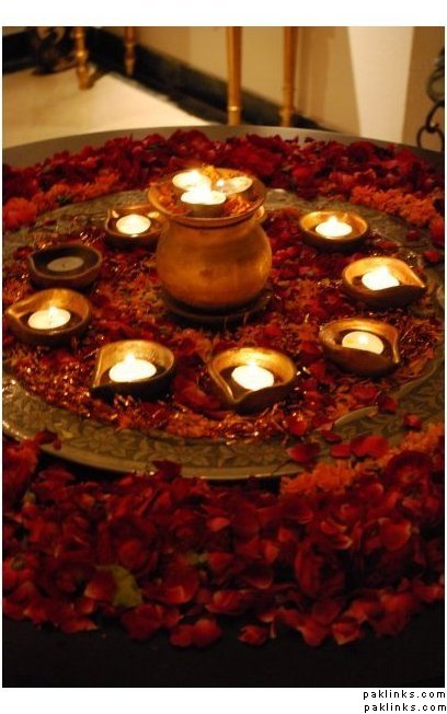 Hey, me and my sister want to do our own table decorations for the barat and mehndi. florists and other companys charge so much…we want something traditional and a bit different…any ideas.