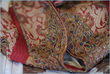 The groom wore an anarkali style cut sherwani made with printed brocade fabric with artistic floral weaving, in antique tones of gold. Ziggi Studio used hand embroidery techniques with Aari & Zardosi work, highlighted with green Swarovski stones and antique kasab work on the sleeves, neckline and front of the sherwani. The outfit was completed with a hand tied safa and matching stole – using the same embroidery design as on the brides outfit.