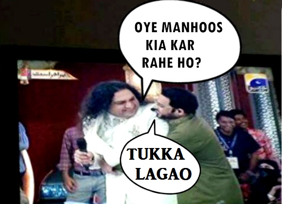 I just don't get what's going through Amir Liaquat's head when he's doing these chichori harqaten and that too in the holy month of Ramadan. Sahir Lodhi is known as being chichora but honestly speaking when he did Geo's 'Inam ramadan' about 3 years back , he actually did a decent job but oh my Amir liaquat is behaving like a big hyper child.