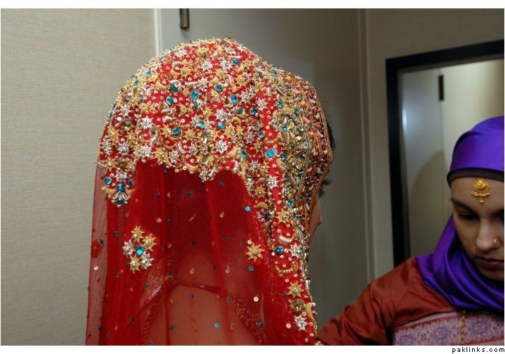 So my dadi came back from Pakistan and surprised me by bringing my nikkah outfit. When I was checking out the dupatta I saw that the kaam on the border got very thick and extended in the center. She told me this is a new riwaaj called a “taj” dupatta where there is more work on the center of the dupatte where it rests on your head. I haven’t been to any weddings where i’ve seen it placed like this , I have two pictures, and I am at a loss as to how this will be set and how it will look.