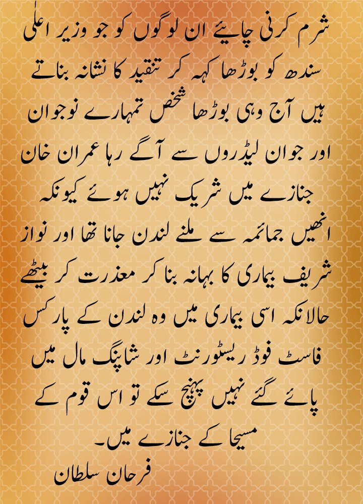 ^ lol … want to earn a credit for attending funeral, pathetic CM is not doing anything for his province and you want people to respect him because he attended a funeral, bravo ! Bhutto to zinda hay na.