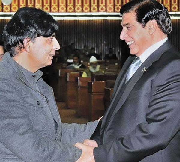 Nice picture. From picture it seems … Pervaiz Ashraf is smiling at ch Nisar and his party after making idiot of him and his party and Nisar is worried that what next PPP would do to make him and his party fool again. ![]()