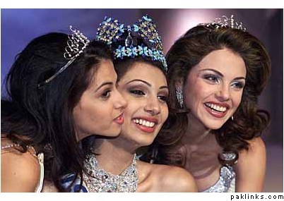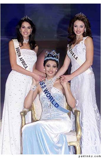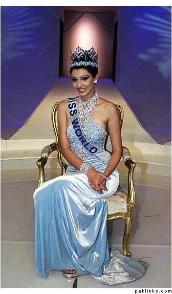 ^ But its true..i swear she was wearing white it looked as if some huge jinn was sitting on the sofa with so much of silver/white tacky makeup... There was also some controversy after her winning the miss world crown that whether she deserved it or not - some news papers said that she was sleeping with some guy with contacts who made her win...i am not 100% sure though a friend told me about this issue but when i saw her in that particular interview i kinda agree with the fact if she was nice then eventually she would have been working in bollywood films but she is trying hard and not getting any movies like others...