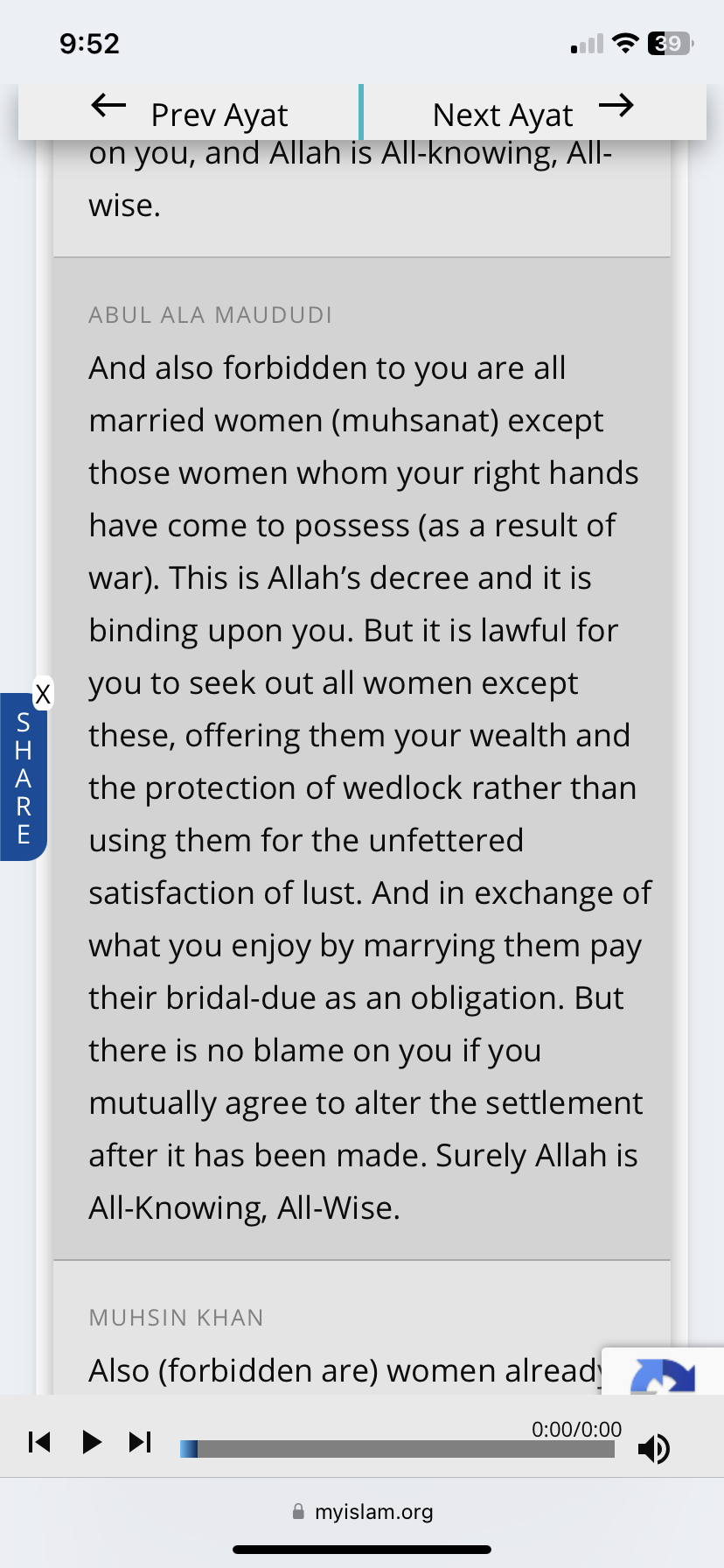 This is your most exalted Maududi translation of 4.24 clearly saying that war captives are halal! Are you going to say that these women would be consensual with someone who killed their fathers, brothers, cousins, husbands?