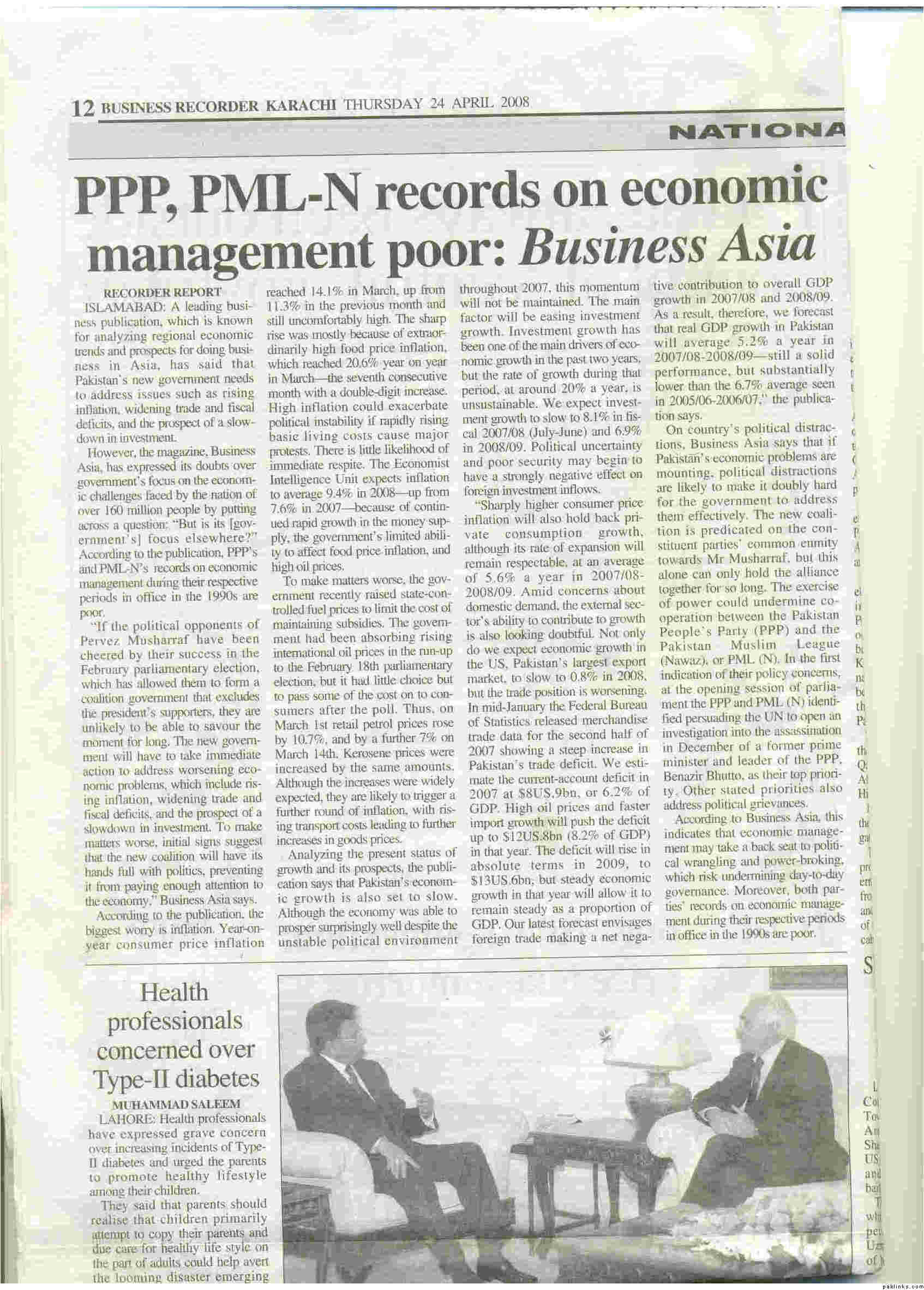 There are tough demands on I Dar. He has to perform instead of blaming the previous government. His previous record is not so promising. Please read the above article. (Bussiness Recorder April 24, 2008)
