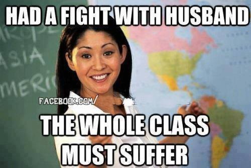 Hum student assume kr lete hain thain k aaj teacher ka mood acha nahi hy lagta hy ghar pr hi fight howi hy :D