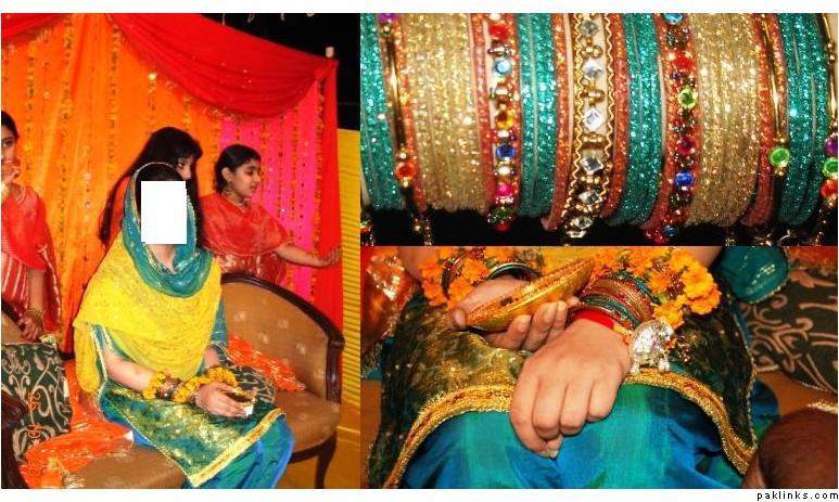 mehndi = since we give off the jora in charity right away, it was not very heavy. it was a simple shalwar qameez with my mom’s jahaiz dupatta which i got dyed (it was actually offwhite) and extended with aqua green chiffon with gota borders. I stitched the dupatta myself