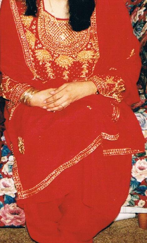the only thing i would change from the original outfit now is the kameez. it could have been made of a slightly different silk- something heavier. it was very lightweight silk and on the short side so it needed some work in the dupatta setting and doing it in such a way that it weighed it down from the front, but i found that on the day of, i didn’t really care. its only since then when you sit down and review things with family that it occurred to me that possibly something different could have been done. i’m planning on wearing it again at my cousin’s shaadi this summer iA with a slightly longer, plain rawsilk shirt-- of course thatl depends on where i am with the baby weight! ![]()