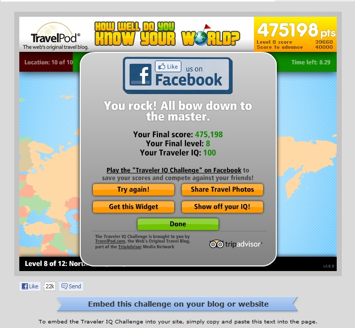 **Alrighty folks!! Put your thinking caps on, and show me your skillzzzz…this one ought to be easy for us, it’s all about the motherland!!! Remember to post your score and level reached, okies?