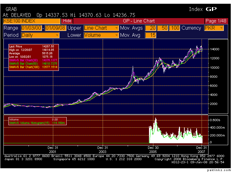 After 8 years of Musharrf rule ... in 2007 ... KSE is worth 70 billion dollars (KSE index is above 14000).