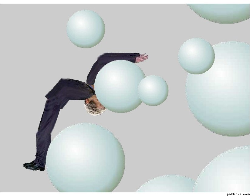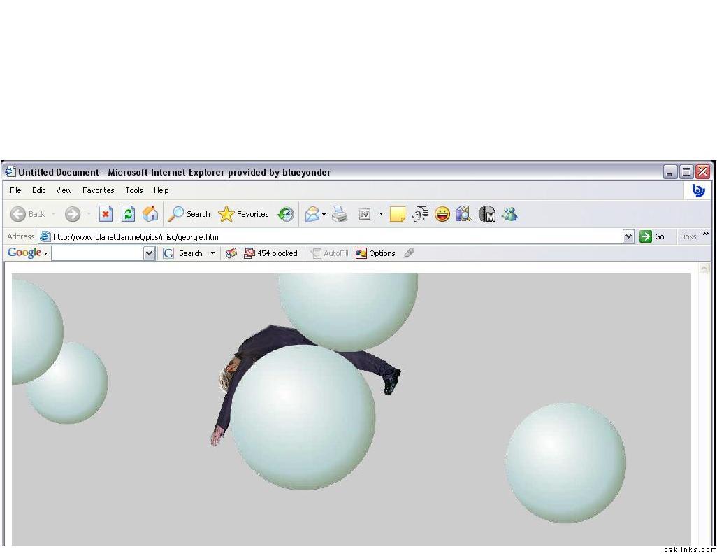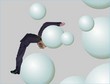 On my computer, the guy got lodged between two of the round things in a kneeling position, bouncing back and forth at his midriff ever so slightly off the ball in front of him.