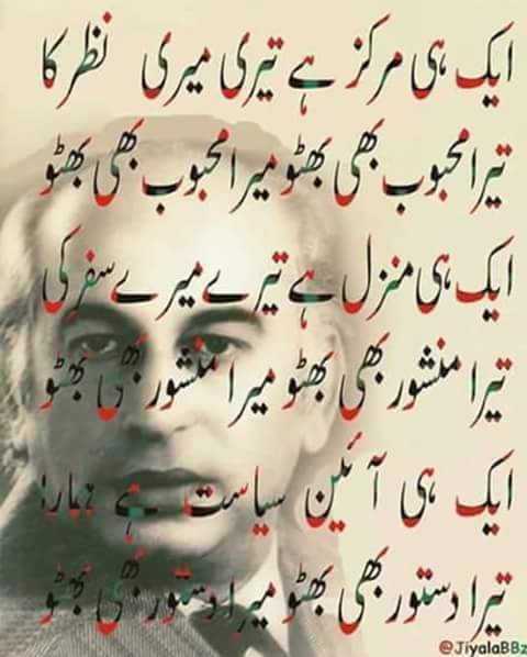 یہ 27 سال کا لڑکا جو انتے فخر جوش اور جذبے سے ڈائس پے کھڑا ہے اس ڈائس پے دنیا کے بہت بڑے لیڈر کھڑے ہوتے ہیں اور یہ لڑکا نہ تو کسی ملک کا MPA, MNA نہ کسی ملک کا Minister ہے نہ ہی P.M ہے یہ سب کچھ نہ ہونے کے باوجود بھی یہ سب کچھ ہے یہ بھٹو کا خون ہے جس کو دنیا جھک کر ملتی ہے اس خون میں وفا ہے اور ایسی وفا کے یہ خون مر جانا تو جانتا ہے جھک جانا نہیں جانتا ہے جسکی ماں بنظیربھٹو ہو اور جسکا نانا ذولفقارعلی بھٹو ہو تو دنیا کیسے اسکو سلام نہیں کرے گی اور ہمارے کم نظر سیاستدان اسکو سیاست سکھنے کا مشورہ دیتے ہیں جس سے سیاست دنیا سیکھتی ہے