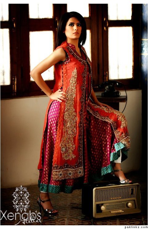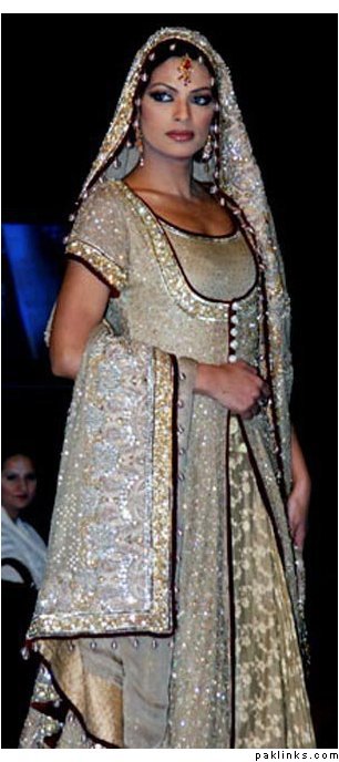 Hi guy, I just got back from a survey of clothes from gulf market, to wear for my brother’s wedding early next year. I saw this very long banarsi undershirt and over it there was chiffon sleeveless long coat with embroidery over it. Alot of them had lovely contrasts with turquoise and beige or purple and grey but I’ve never seen anyone wearing it in weddings. How do they look?