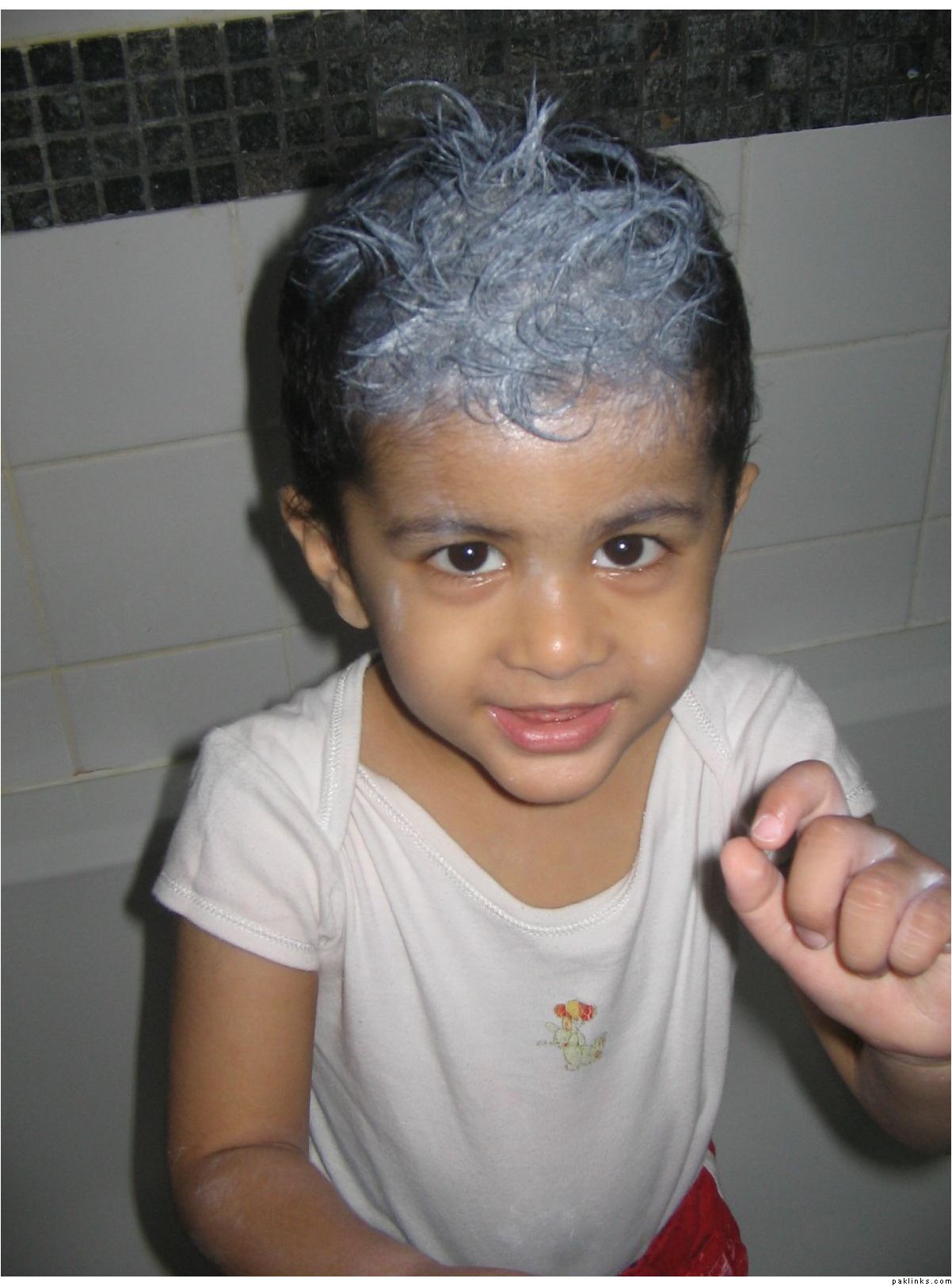 Hahahaha that reminds me of my nephew Daniyal who did exactly the same! It took ages to get it out of his hair and his clothes ![]()