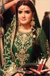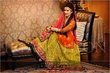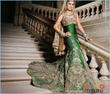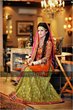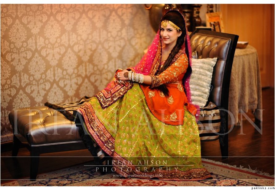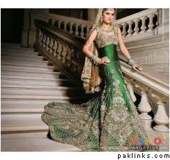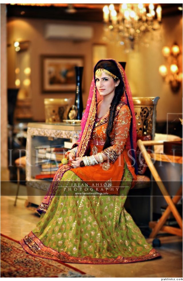 she’s talking about an outfit worn with a fishtail braid. I think this might be the one though it not exactly a fishtail braid that the bride is wearing but the rest of the description does match i.e emerald green mehendi outfit..hope this is helpfull.