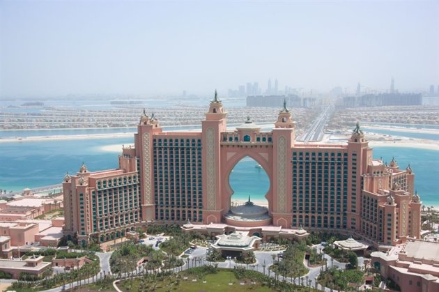 Located on The Palm Islands archipelago, the Atlantis hotel is modelled on its namesake in the Bahamas and has the same underwater theme. It accommodates more than 1,500 rooms across 23 floors and includes Dolphin Bay, an attraction which enables guests to swim with the graceful mammals.