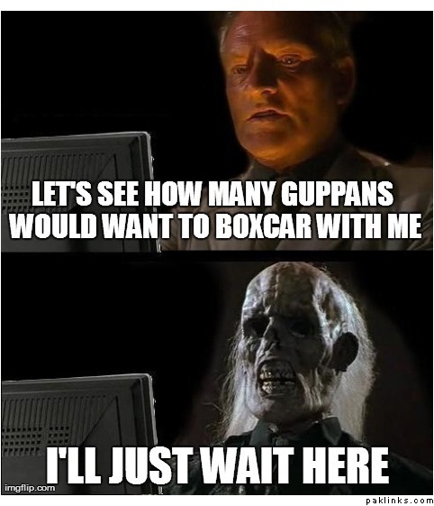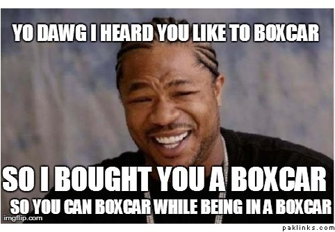 hey guys, i think it's enough now with the boxcar jokes. It's getting uncomfortable for me and going a bit beyond what was at first a harmless joke, so can we please give it a rest?!