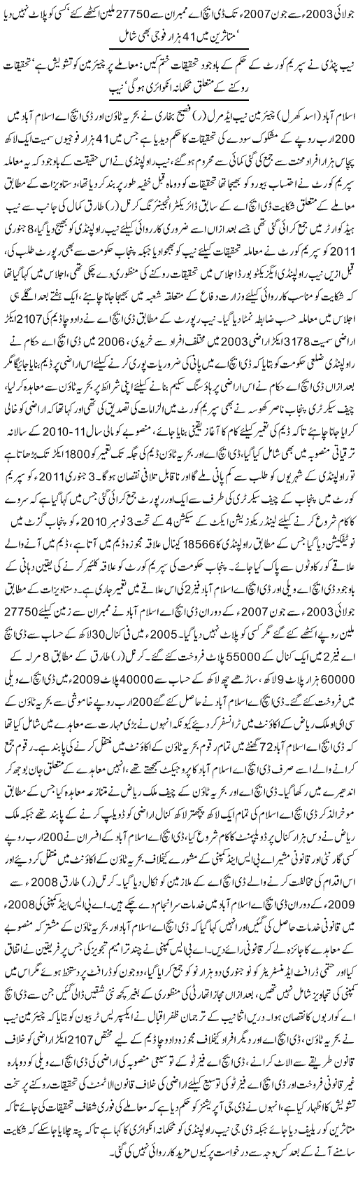 - Land scandal: NAB opens closed inquiry into Rs200 billion scamThe Express Tribune-09-Jun-2012