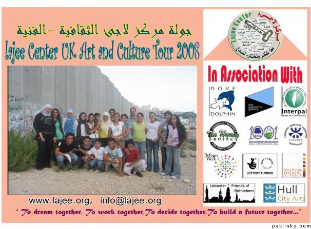 A group of young artists, from Lajee center, coming from a deprived camp in Bethlehem on their world tour, tell their stories with surprising talent, vision, and honesty through photographs, images and dance, proving that talent can bloom, in the most difficult conditions of life in exile and under Occupation.