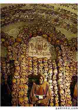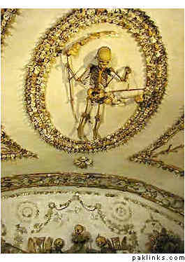 The bones in the six-room crypt represent over 4,000 individual monks. It is said monks fled the French Revolution (1793-94) and took refuge at the Church in Roma. There are many theories about the arrangment of the bones, but most stories end with the notion that the anonymous artist reaped his heavenly reward. One tale says that a French Capuchins did the work, no doubt mimicing the catacombs of Paris. The Marquis de Sade visited the crypt in 1775 and described it as “An example of funerary art worthy of an English mind”, created “by a German priest who lived in this house.”