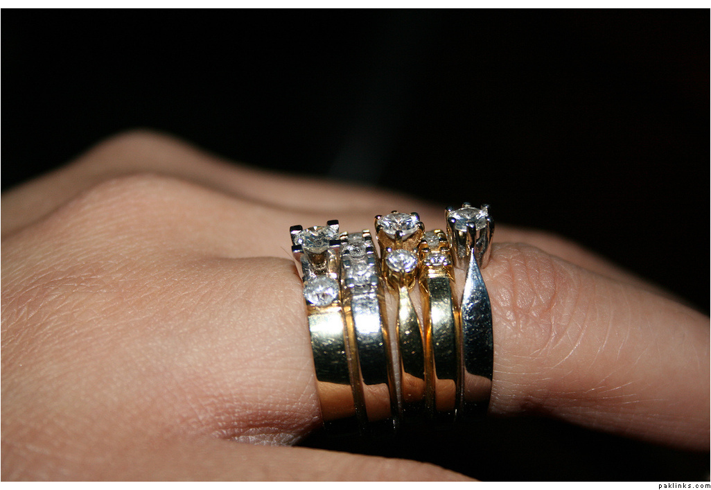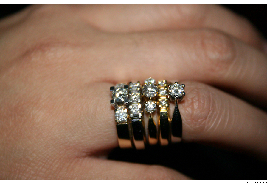 I was with my friend, and she had these rings on, She had 2 of them on the other finger, but just for this photo she took them all on the same finger (she said its Noor Jehan style). Anyhow here it is, 5 diamond rings(she mentioned platinum too)…I forgot their type etc, but its value is above 30,000 UK pounds.
