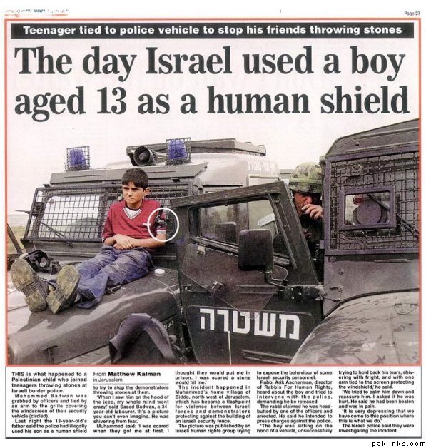 Yes , isreali soldiers even uses these innocent palestinian children as sheild during house search operations -- The whole wrld is blind - where r da veto powers ? whr is da human rights group? where r child rights ? where is peace loving UNSC ?