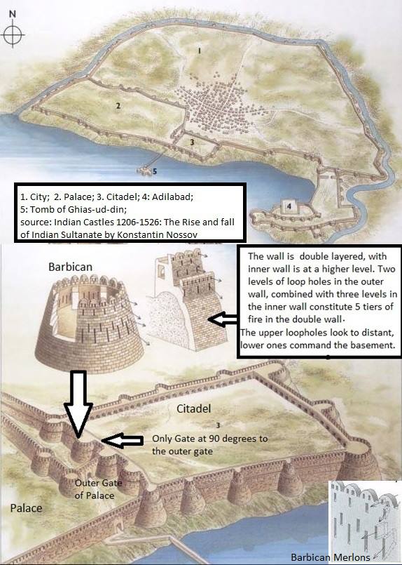 These mighty fortifications were larger than anything ever seen before, the example below is just one type of defence that has survived but dates from about 80 years after Iltutmish, it was built by the Sultan Giyas Ud Din Tughlaq, whose tomb lies close by. It gives us an idea of how formidable the Delhi Sultanate fortifications could be. While most fortifications in Europe and the Middle East featured Square towers, these towers are rounded, conical shapes in nature, the bottom is super thick and it tapers towards the top. Designed to deflect the shots of powerful siege engines and to counter the ladders of an attacker. The fact these fortifications are double walled makes them even more of a challenge for an attacking force.