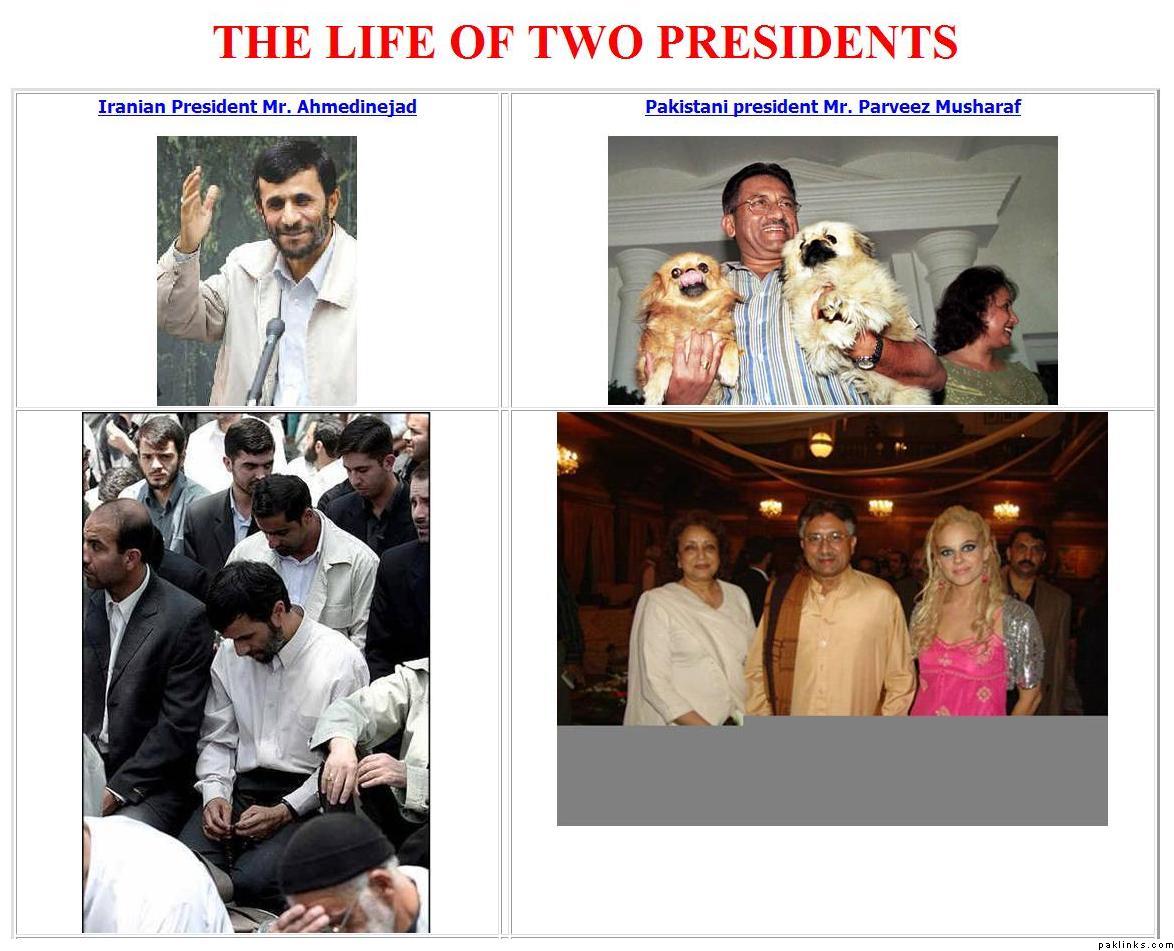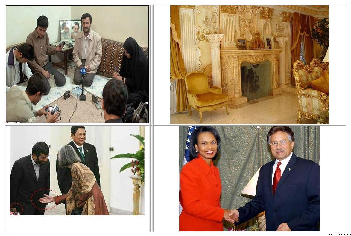 Some of them are not good comparison, esp one showing Ahmedinejad praying on side of road/sitting in mosque